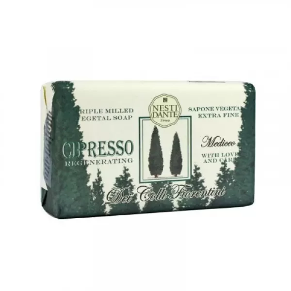 A ciprusok regeneráló tulajdonságai támogatják a testi és szellemi kényelmet, miközben növényi alapja táplálja a bőrt, egyúttal gyengéden eltávolítja a szennyeződéseket és a méreganyagokat. Nesti Dante – a legtökéletesebb olasz szappangyártás hagyománya.