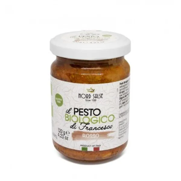 <p>A Francesco's Pesto, Vörös szósz, olyan recept alapján készült, mely szerint 18 hónapig szobahőmérsékleten lehet tartani, teljes mértékben biogazdálkodásból származó alapanyagokkal készítve, extra szűz olívaolajat felhasználva. olasz paradicsompéppel és szárított paradicsommal. Kivételes termék, krémes és illatos. Ideális azoknak akik olyan termékeket szeretnének fogyasztani amelyben biztosak lehetnek, hogy az alapanyagokat teljes egészében biogazdálkodásból nyerik. Olasz bio bazsalikommal készül.</p><p>Összetevők: Extraszűz olívaolaj , paradicsomszósz , szárított paradicsom 9%, olasz bazsalikom 6%, kesudió , sajt (tej , só, oltó), fokhagyma , só, antioxidáns: aszkorbinsav. bio</p>
