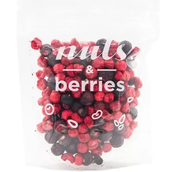 Összetevők: 50% liofilizált fekete ribizli, 50% liofilizált piros ribizli.
