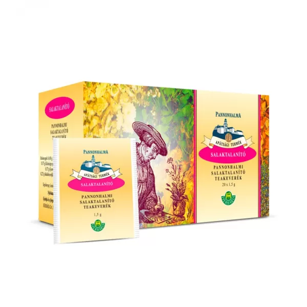 A Pannonhalmi salaktalanító tea egy ősi bencés recept alapján készült teakeverék, amely önállóan vagy kiegészítő kezelés formájában alkalmazható a szervezet salaktalanítására. A tea gyógynövény komponensei segíthetnek csökkenteni a tápanyagok felszívódását, és elősegíteni a felesleges anyagcseretermékek kiürülését.