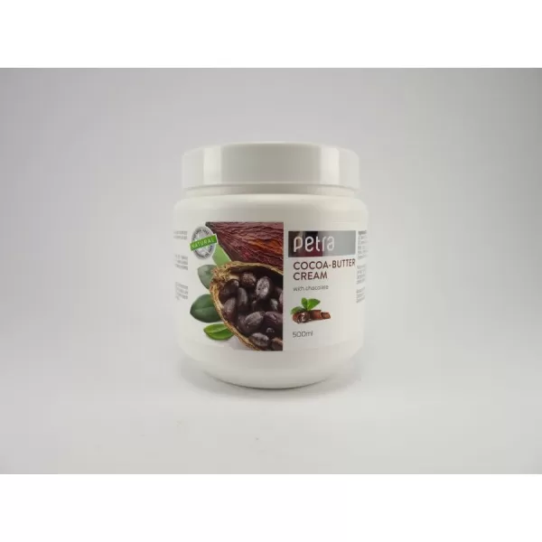 300 ml PETRA KAKAÓVAJAS KRÉM, bőrrokon anyagokat tartalmazó krém, amely gyorsan felszívódik. Összetétele révén a bőrt nem irritálja, kíméletesen zsíroz és puhít.