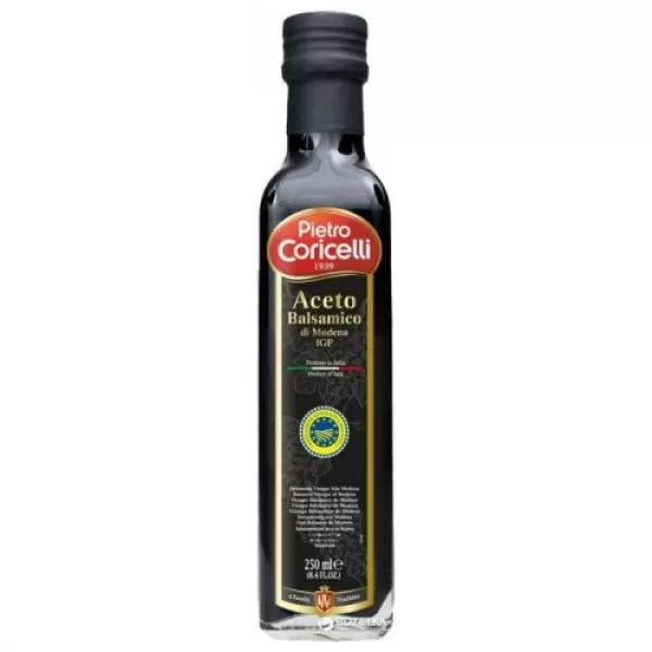 A Pietro Coricelli balzsamecet egy különleges és ízletes választás, amely tökéletesen alkalmas saláták, szószok és különféle ételek ízesítésére. Borecet szőlősűrítmény felhasználásával készült, így minden cseppje egyedülálló karaktert és gazdag ízt hordoz. Az ízélmény fokozása érdekében a balzsamecetben színezék E150D és módosított keményítő is található.