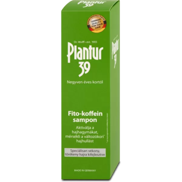 PLANTUR 39 KOFFEINES SAMPON: A samponban lévő koffein komplex erősíti a hajhagymákat, segíti a hajnövekedést, kivédi a tesztoszteron hajhagymákra gyakorolt negatív hatását.