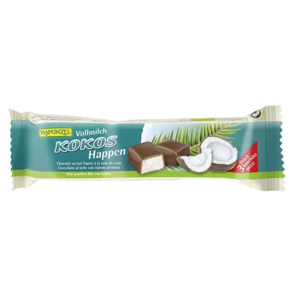Rapunzel bio kókuszkockák tejcsokoládé bevonattal 50 g