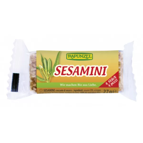 szezámmag* 50%, rizsszirup*, teljes értékű nádcukor*, Cristallino nádcukor*, félédes csokoládébevonat* 26% (Cristallino nádcukor*, kakaómassza*, kakaóvaj*).