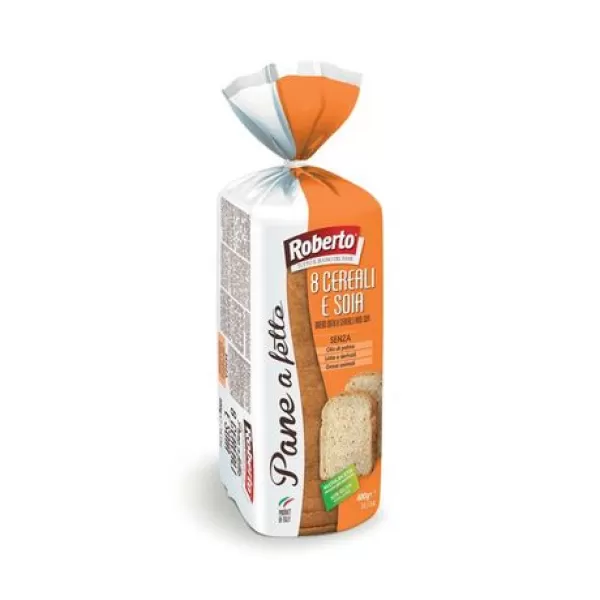 Búza-, árpa-, tönköly-, durumbúza-, rizs-, és rozsliszttel készült szeletelt kenyér szójagranulátummal, zabpehellyel, pirított kukoricával, kölesmaggal és napraforgóolajjal.
