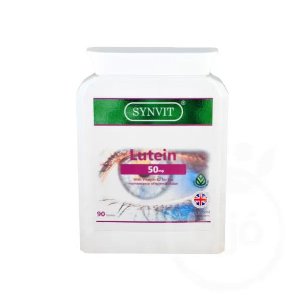 Összetevők: lutein (50mg), B2 vitamin (140mcg), mikrokristályos cellulóz, dikalcium-foszfát, magnézium-sztearát.