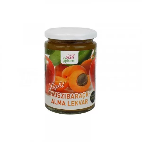 Szafi Reform kajszibarack-alma lekvár 350g, 65%-kal csökkentett energia és 60%-kal csökkentett szénhidráttartalmú lekvár.Összetevők