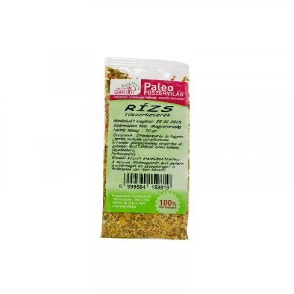 A Szafi Reform fűszer rizs 50g egy paleo rizs fűszerkeverék, amely rizsből készült ételek készítéséhez használható.