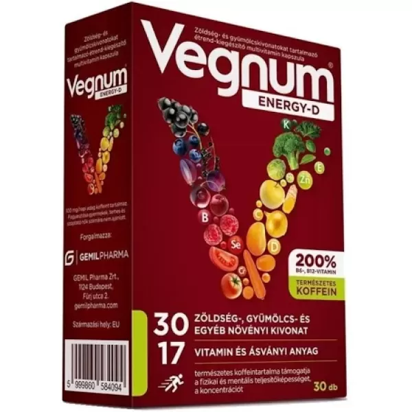 A Vegnum Energy-D egy különleges multivitamin kapszula, amely 30 db kapszulát tartalmaz. Ezt az étrendkiegészítőt úgy tervezték, hogy támogassa a mindennapi energiaszintet és általános egészségi állapotot.