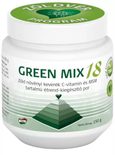 A Green Mix 18 étrend-kiegészítő tartalma Green Mix 9-hez képest kilenc új nagyszerű, lúgosító és erős antioxidáns hatóanyaggal, összetevővel gazdagodott a tartalma: cékla, a koriandermag, a csicsóka, a medvehagyma, az MSM, a spárga, a borsikafű, a himalájai só és a kapor.