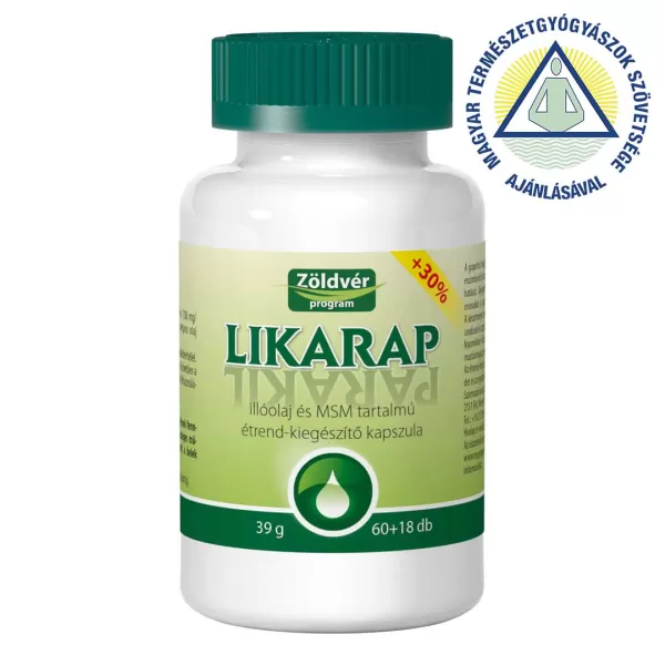 A Likarap illóolajat és MSM-et tartalmazó étrend-kiegészítő kapszula.