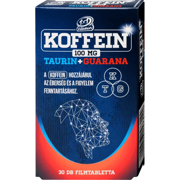 Az 1x1 Vitamin Koffein + Taurin + Guarana filmtabletta 100 mg koffein tartalma hozzájárul az éberség és a figyelem fenntartásához. Koffeint, taurint, guaranát, B1-, B2-, B6-, B-12 vitamint tartalmaz.