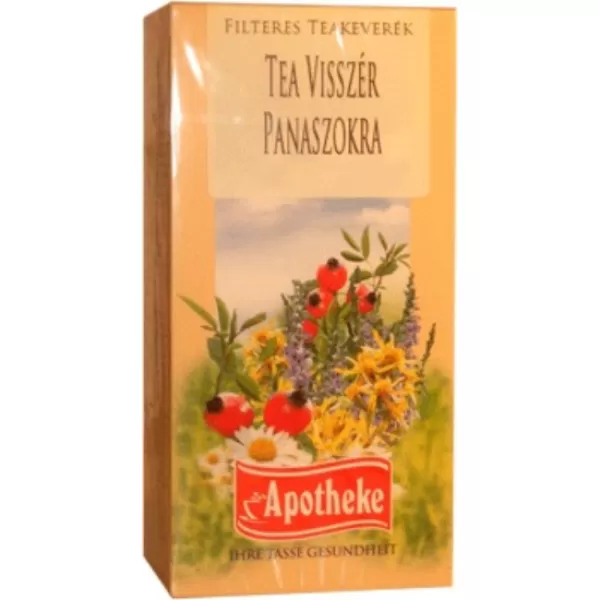 APOTHEKE TEA VISSZÉR PANASZOKRA Aranyvesszőfű, mezei zsurló, porcsinfű, keserűfű tartalmú teakeverék.