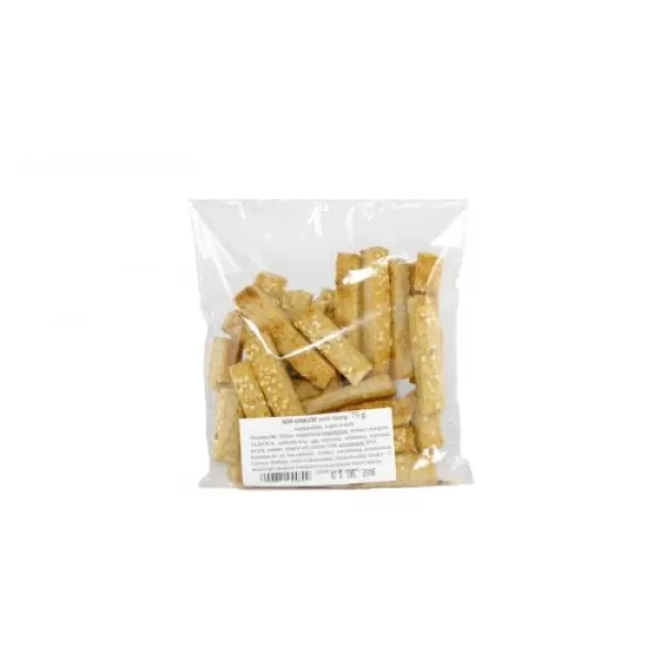 Összetétele: Tészta: teljes kiőrlésű tönkölybúzaliszt (47*), növényi margarin, zabkrém, szezámmag, Himalája ős só (1,2%), bio citromlé. Felület: zabkrém, szezámmag, köménymag.