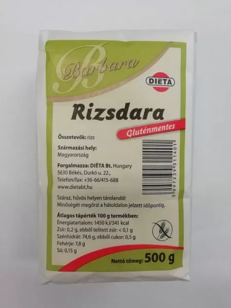 Számukra lehet jó választás a rizsdara, mely gluténmentes alapanyag, és kiválóan helyettesíti a hagyományos búzadarát. A rizsdara készítése során a rizsszemeket apró szemcsékké őrlik, így az értékes összetevők nem vesznek el, az íze is a megszokottal teljesen megegyező.