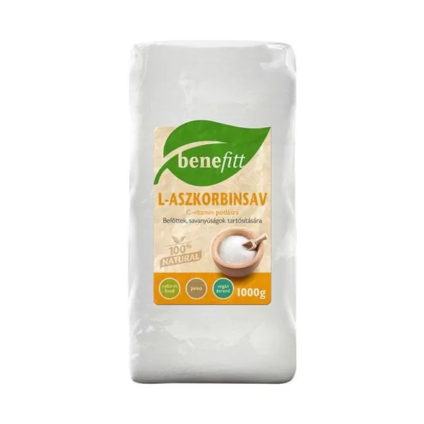 A Benefitt L-Aszkorbinsav 1000g egy kiváló minőségű C-vitamin forrás, amely hozzájárul az immunrendszer támogatásához és a sejtek oxidatív stresszel szembeni védelméhez.