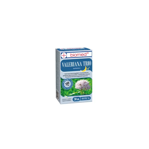Valeriana (macskagyökér), komlótoboz és golgotavirág kivonatokat, valamint B6-vitamint tartalmazó étrend-kiegészítő kapszula.
