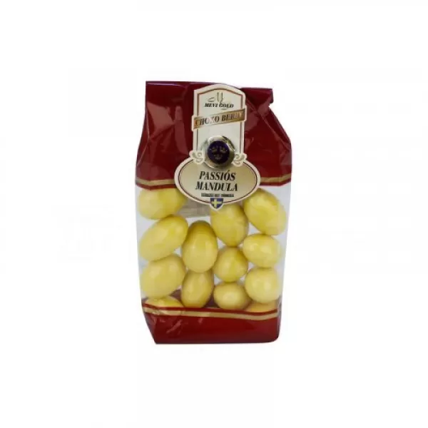 Fehércsokoládés (77%) mandula (20%), passió gyümölcs ízesítéssel