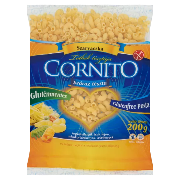 CornitoTM Tóthék tésztája száraztészta kiváló minősége a receptúrának, és a kiváló olasz gépeknek köszönhető. A tészta íze közelít a durumtészta ízéhez, tehát élvezetes, színe a kukorica alapanyagnak köszönhetően szép sárga, és az állagát főzés után is kiválóan megtartja. Fogyaszthatják: Lisztérzékenyek, tojásérzékenyek, tejcukorérzékenyek, szójaérzékenyek, vesebetegek, tojást nem tartalmaz, így koleszterinmentes.