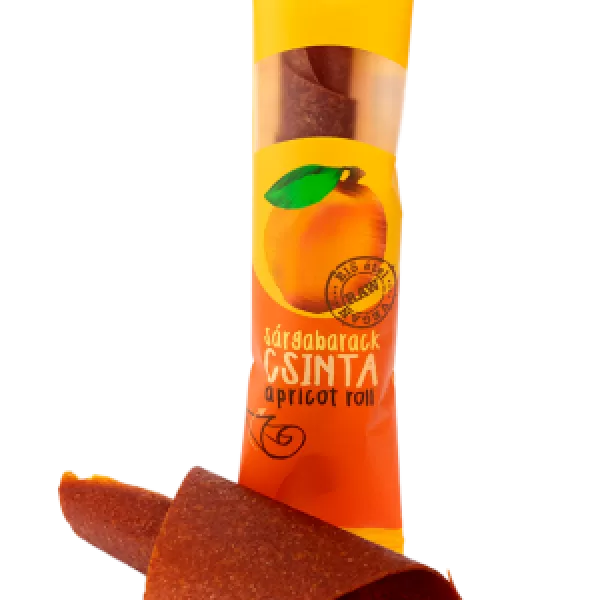 Szárított barackos gyümölcstekercs. Összetevők: Sárgabarack, alma és semmi más. Száraz hűvös helyen, zárt csomagolásban tartva finom marad.