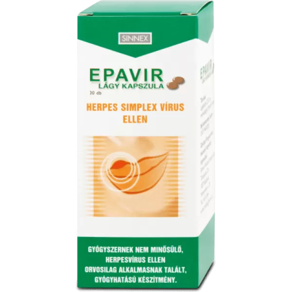 Szájon át szedhető EPAVIR lágy kapszula. kizárólag természetes hatóanyagokat tartalmaz, a herpesz vírus ellen orvosilag alkalmasnak talált készítmény, a szájon, szájüregben, nemi szerveken és egyéb testfelületen előforduló herpes simplex (herpesz) fertőzés kezelésére szolgál. Gyógyszernek nem minősülő gyógyhatású készítmény.