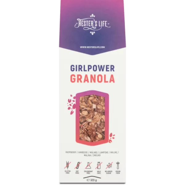 A Hester’s Life dietetikusa gluténmentes zabból, hozzáadott cukor nélkül, természetes alapanyagokból gondolta újra a granola fogalmát. A GirlPower Granolát üde málna és ropogós almakockák teszik elképesztően finommá, íze egyszerre fanyar és édes. Minden kanál a jó idő hangulatát hozza el nektek!
