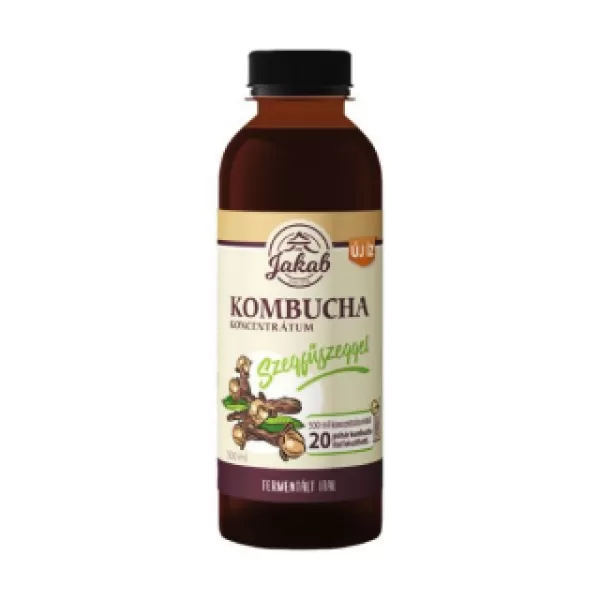 Összetevők: kombucha koncentrátum (víz, cukor, fekete tea, kombucha gomba), szegfűszeg