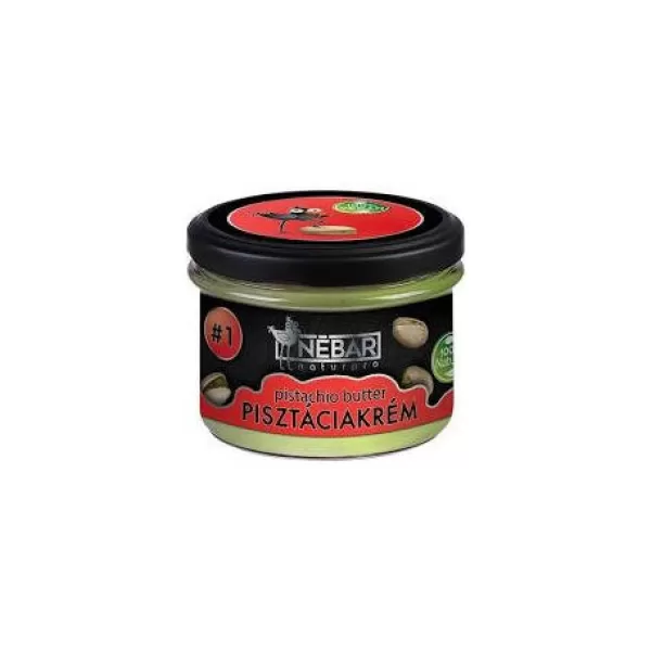Nébar naturpro pisztáciakrém 180g nagy gondossággal válogatott, pörkölt pisztáciából készült. Tökéletes alapanyag péksütemények, pralinék és torták ízesítésére és töltésére. Kézműves és magas minőségű fagylaltok összetevőjeként is felhasználható, valamint kenyérre is kenhető.