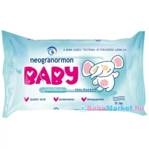 A Neogranormon törlőkendő különösen finom törlőkendő aloe vera és kamilla kivonattal készült. Vastag, puha és textilhatású, így ideális a baba érzékeny bőrének ápolására és tisztítására.