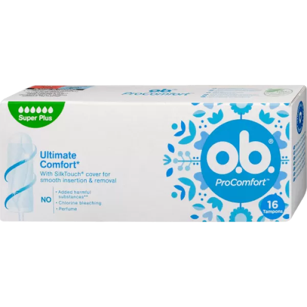 Az o.b.® ProComfort™ tampon egyszerre két dolgot nyújt: egyesíti magában az o.b.® csavart bordázat technológiát a megbízható védelemért, valamint a könnyű felhelyezést biztosító egyedülállóan selymes SilkTouch™ borítást. Az egyedülálló SilkTouch™ szálfátyol borításnak köszönhetően a tampon jobban csúszik, ezáltal az eddigi legkönnyebb o.b.® felhelyezést biztosítja.