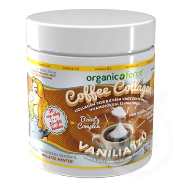 Organic force kávé kollagén por kávéba vagy egyéb italba vitaminokkal és inulinnal vanília 318 g