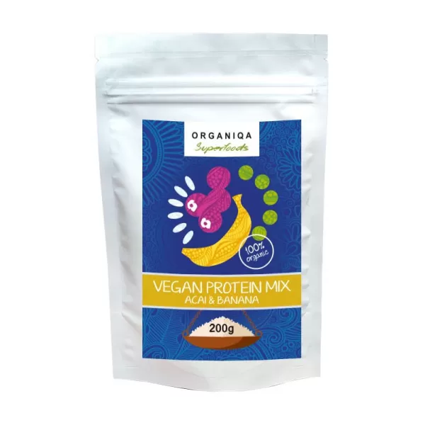 Az Organiqa acai-banán vegán fehérje mix egy különleges bio fehérje keverék, amely nélkülözhetetlen a növényi étrendet követők fehérjepótlásához. Az egészséges összetevők még a legszigorúbb elvárásoknak is megfelelnek: