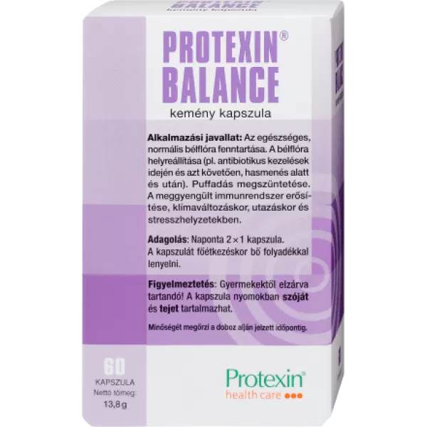 A Protexin Balance gyógyszernek nem minősülő gyógyhatású készítmény, melynek hatóanyagai olyan probiotikus baktériumok, melyek az egészséges szervezet bélflórájának összetevői.