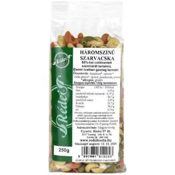 Rédei tészta 45%-al csökkentett szénhidrát tartalmú 3 színű orsó 250 g