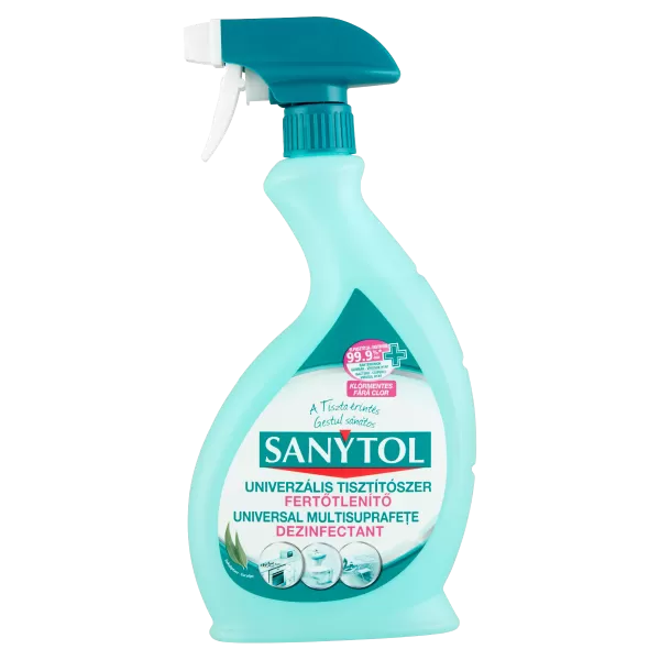 A Sanytol univerzális fertőtlenítő tisztítószer ideális választás, ha fertőtlenítésre van szükség a lakás bármely részén, például WC csészék, szemetesedények, szemétledobók, szemetes tartályok, mikrohullámú sütők, munkafelületek, hűtőszekrények, textilek, szőnyegek és matracok esetében. Különösen praktikus, hogy a termék öblítés nélkül is hatásos, kivéve az élelmiszerekkel érintkező vagy gyerekek, illetve háziállatok által használt felületeken.