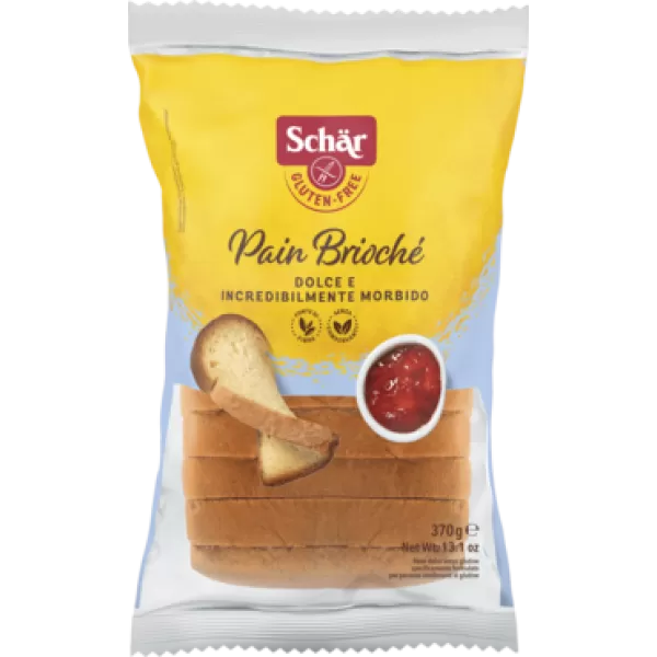 Schar Gluténmentes kenyér édes pain brioché. Diétás termék gluténmentes étrendhez. Természeténél fogva glutén- és búzamentes alapanyagokból készült. Gluténmentes édes kenyér. Védőgázas csomagolásba csomagolva.