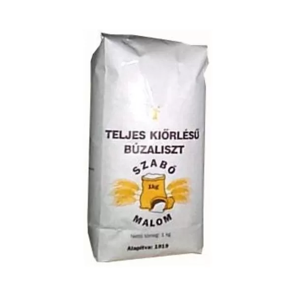 SZABÓ MALOM TELJES KIŐRLÉSŰ BÚZALISZT A teljes kiőrlésű búzaliszt jóval egészségesebb a magas rosttartalma miatt, mint a fehér lisztek.