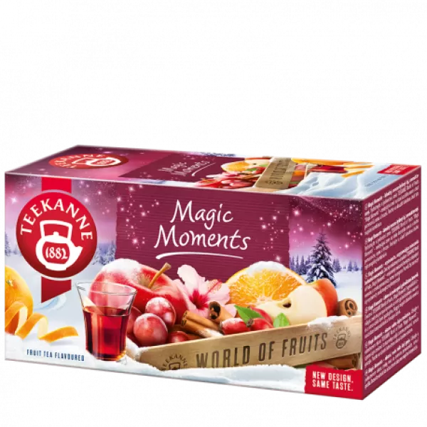 Teekanne Magic Moments tea 20x2,5g (50 g) egy különleges keverék az érett gyümölcsök, narancs és rum-szőlő ízének harmóniájával.