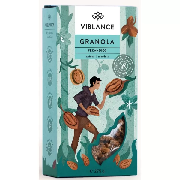 A Viblance Granola Pekándió egy másik nagyszerű választás, amely a pekándiók gazdag ízét és tápanyagtartalmát hozza el a reggeli vagy napi étkezésekbe. Ez a granola különösen jól kombinálható friss gyümölcsökkel, joghurttal, vagy akár csak önállóan, rágcsálnivalóként is élvezhető.