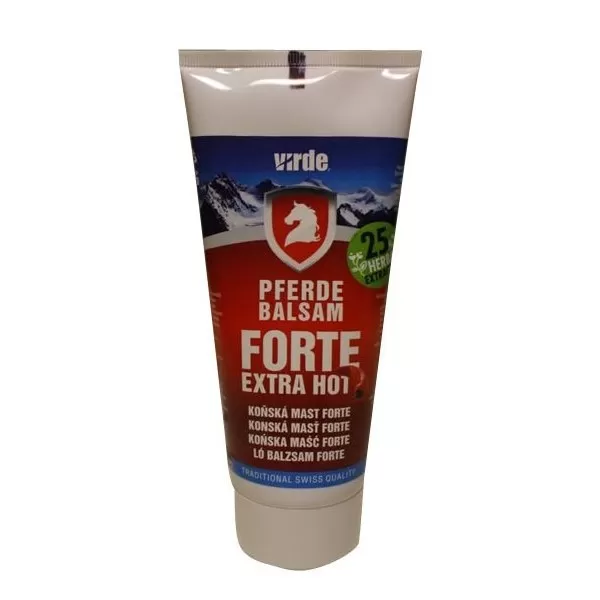 A Virde Pferde Balzsam Forte Hot egy hagyományos svájci receptúra alapján készült melegítő balzsam, amely 25 féle gyógynövény-kivonatból készült. Ez a különleges formuláció a gyógynövények kedvező hatását kihasználva fokozatosan felmelegíti a bőrt, ezáltal növelve a hatóanyagok hatását.