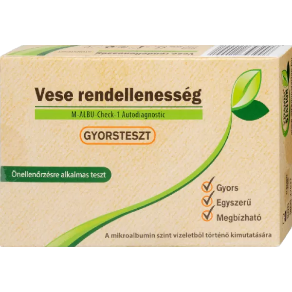 Tesztelje egészségét egyszerűen, gyorsan a Vese rendellenesség gyorsteszt segítségével! Az albumin szint ellenőrzésével az esetleges vesekárosodás a legkorábbi szakaszban kimutatható, így a gyógykezelés is idejekorán megkezdődhet. Ne habozzon, teszteljen!